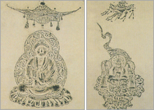 | <µ§¸°Áö(ô¸ëÂÞÑ) ¹üÁ¾>(1011³â), <³»¼Ò»ç(ÕÎáÌÞÑ) ¹üÁ¾>(1222³â) ºÎÁ¶»ó¿¡´Â ºÒÁ»ó À§ õ°³(ô¸ËÏ) ºÎºÐ¿¡¼ ¸ÅµìÀå½Ä°ú dz¼ºÇÑ ¼ú ¸ð¾çÀ» º¼ ¼ö ÀÖ´Ù. <¿ÞÂÊ-µ§¸°Áö ¹üÁ¾ / ¿À¸¥ÂÊ-³»¼Ò»ç ¹üÁ¾> |